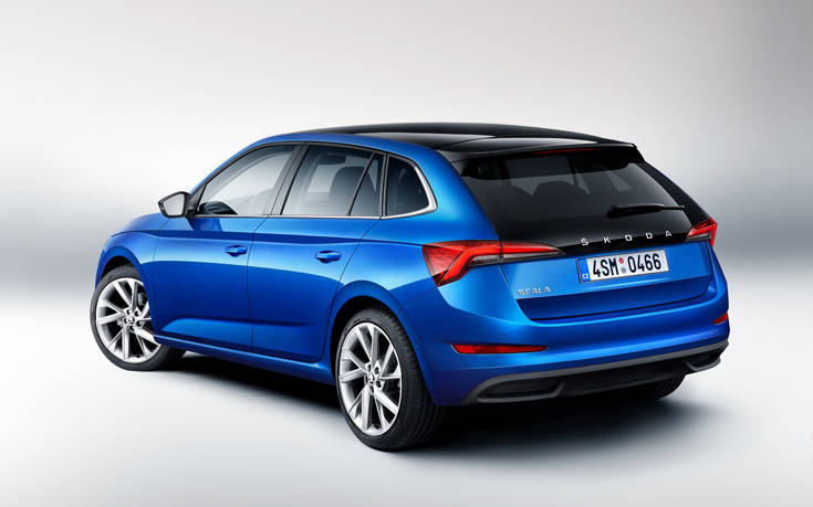 Το Scala είναι το πρώτο μοντέλο παραγωγής για την ευρωπαϊκή αγορά που στην 5η του πόρτα δεν υπάρχει το λογότυπο αλλά το πλήρες όνομα της Skoda. Στο προαιρετικό, πίσω παρμπρίζ που εκτείνεται προς τα κάτω, το όνομα της μάρκας βρίσκεται πάνω στη γυάλινη επιφάνεια.