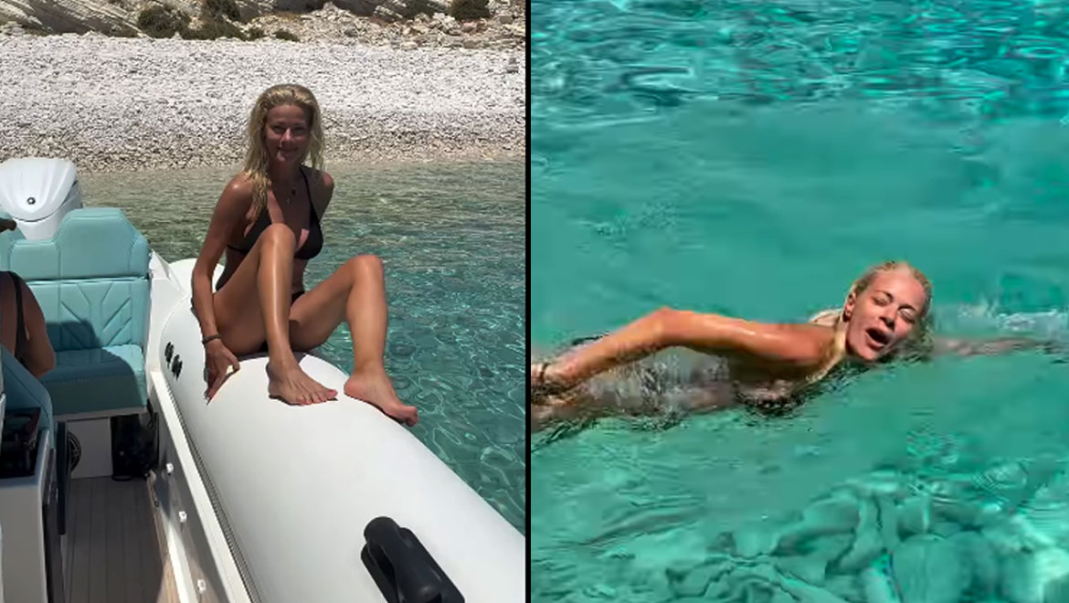 Στο κλιπ που μοιράστηκε με τους διαδικτυακούς της ακόλουθους στο Instagram, φαίνεται να βουτά από ένα σκάφος στη θάλασσα και να απολαμβάνει τα καταγάλανα νερά του νησιού, φορώντας ένα μαύρο μπικίνι.